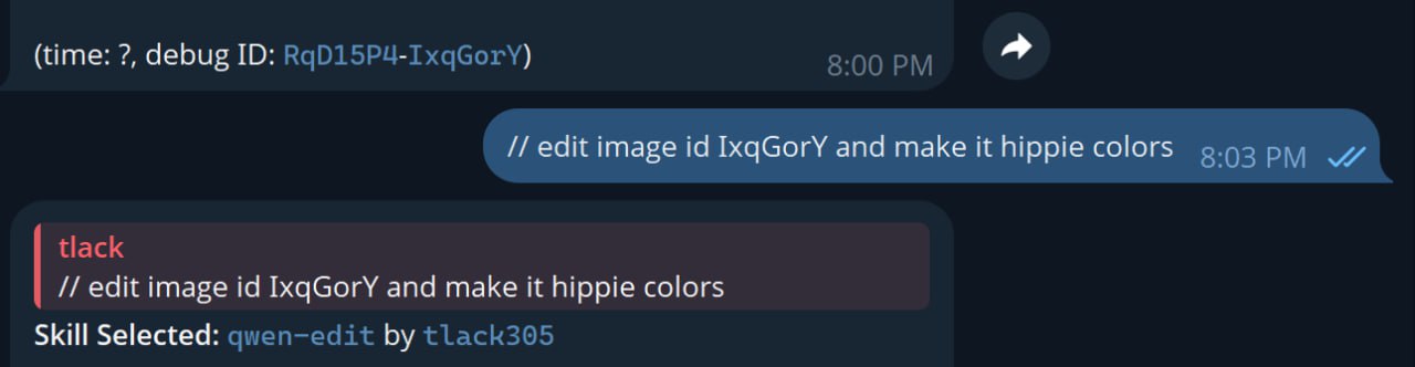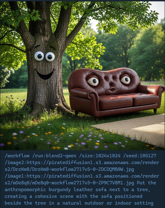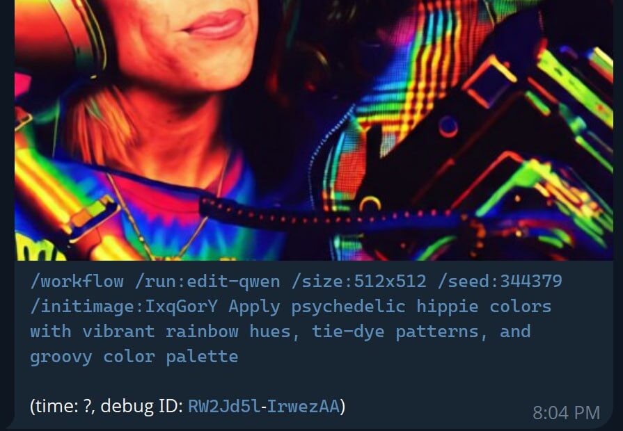 This feature is also available in Telegram’s PirateDiffusion by using the // command. Just write two slashes and the prompt.
