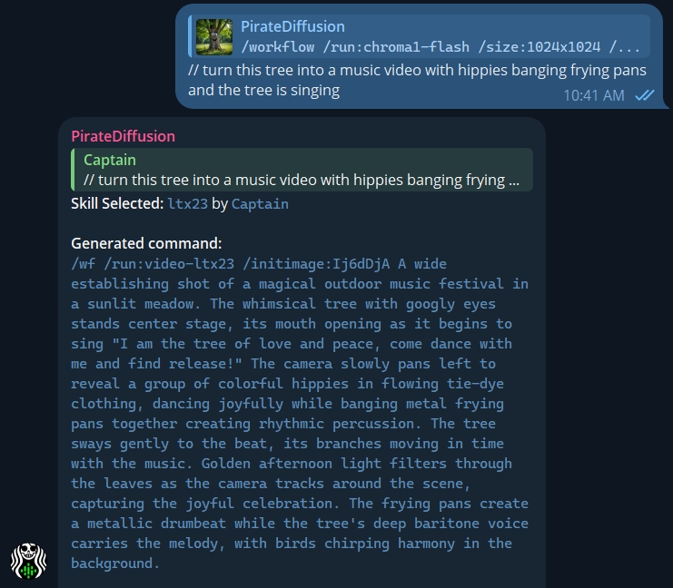 Every PirateDiffusion command is not compatible with skills. The available commands can be listed with: